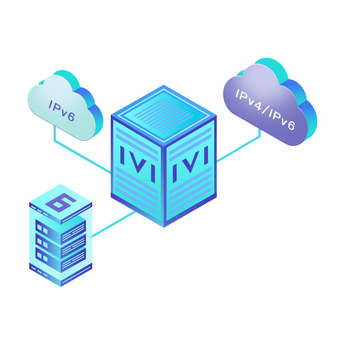 對正在進行IPv6整體升級規劃的運營商,應用IPv6升級方案2.5,通過IVI無狀態翻譯技術和純IPv6接入網絡,為雙棧客戶端和雙棧服務器提供連通服務。